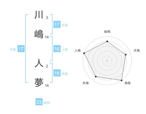 川嶋 人夢さんを姓名の画数から五運を鑑定