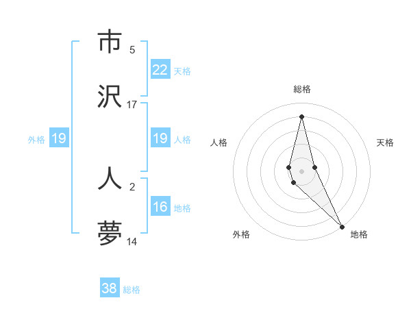 市沢 人夢さんを姓名の画数から五運を鑑定