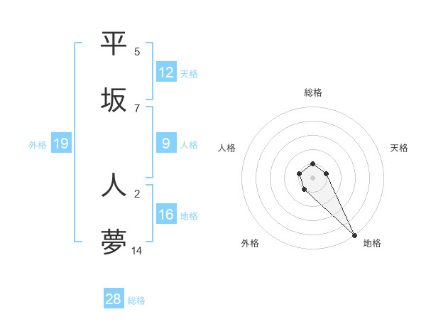 平坂 人夢さんを姓名の画数から五運を鑑定