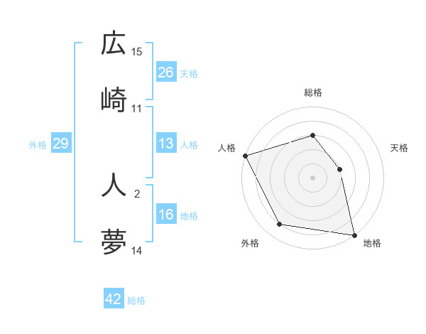 広崎 人夢さんの総格は42画の3点!