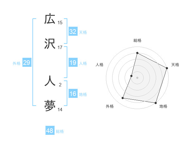 広沢 人夢さんを姓名の画数から五運を鑑定