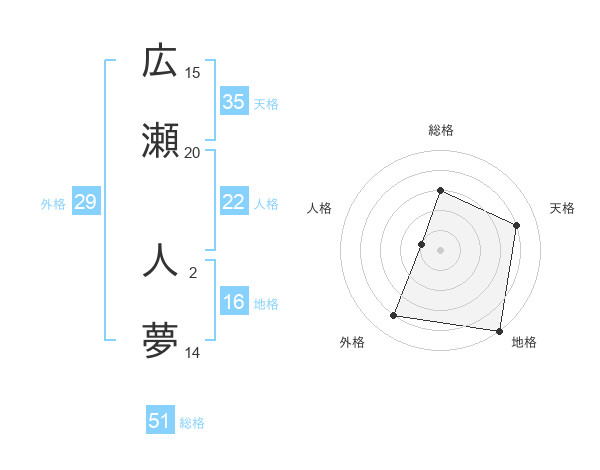 広瀬 人夢さんの総格は51画の3点!