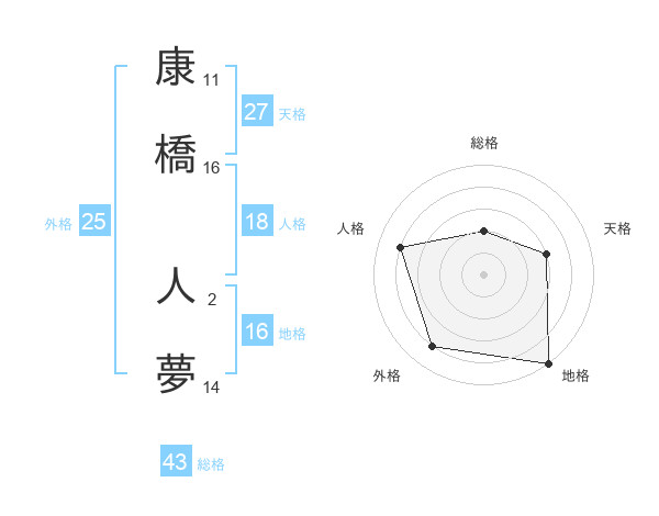 康橋 人夢さんの天格は27画の3点!