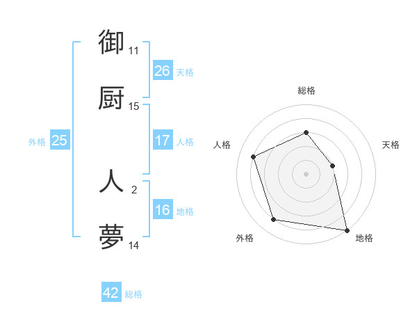 御厨 人夢さんの外格は25画の4点!