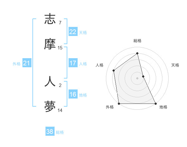 志摩 人夢さんの総格は38画の4点!