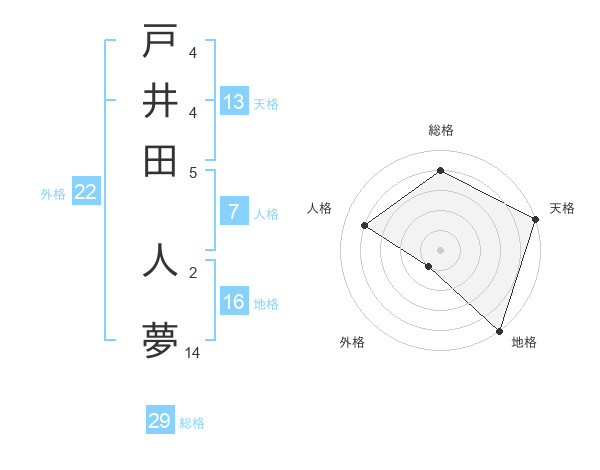 戸井田 人夢さんの総格は29画の4点!