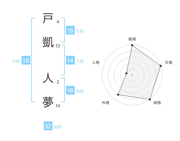 戸凱 人夢さんを姓名の画数から五運を鑑定