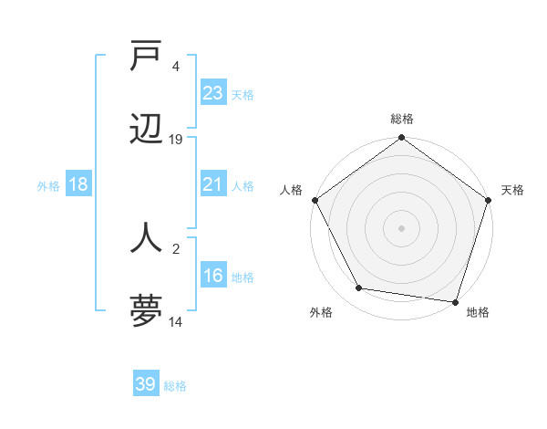 戸辺 人夢さんの人格は21画の5点!