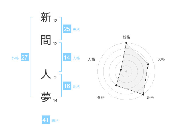 新間 人夢さんの総格は41画の5点!
