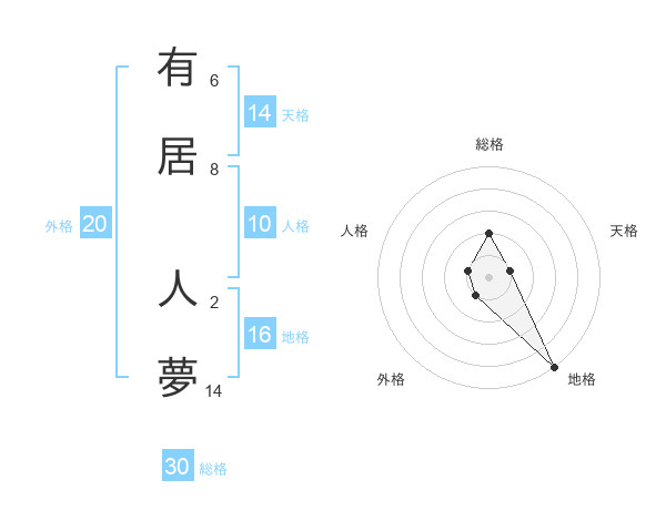 有居 人夢さんの総格は30画の2点!