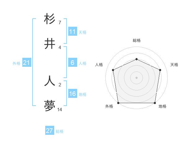 杉井 人夢さんを姓名の画数から五運を鑑定
