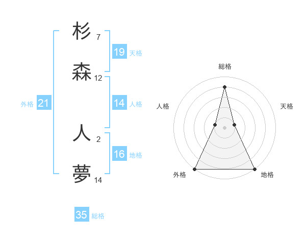杉森 人夢さんを姓名の画数から五運を鑑定