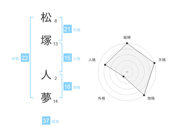 松塚 人夢さんの外格は22画の1点!
