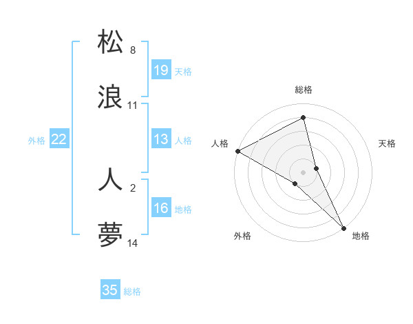 松浪 人夢さんの総格は35画の4点!