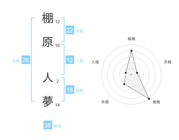 棚原 人夢さんの総格は38画の4点!