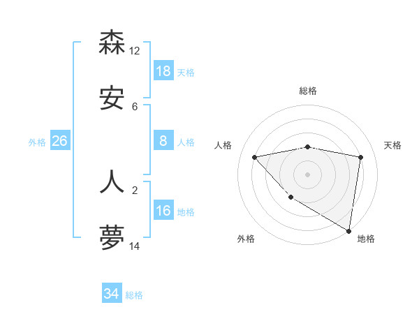 森安 人夢さんの総格は34画の2点!