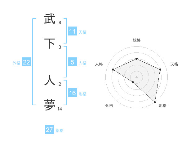 武下 人夢さんを姓名の画数から五運を鑑定