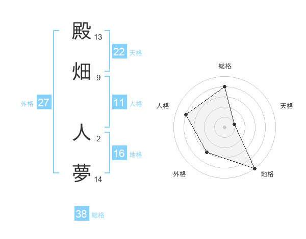 殿畑 人夢さんを姓名の画数から五運を鑑定