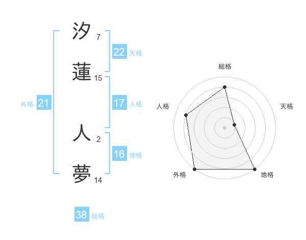 汐蓮 人夢さんを姓名の画数から五運を鑑定