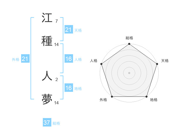 江種 人夢さんの天格は21画の5点!