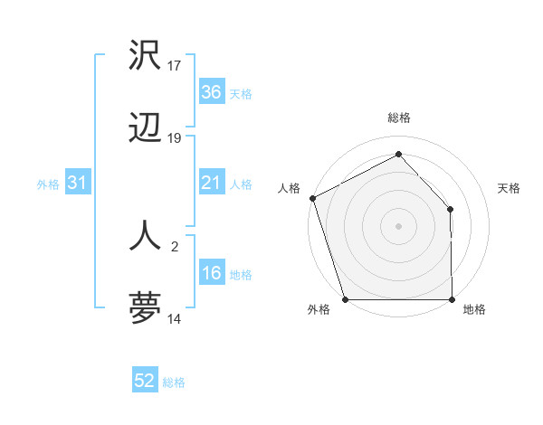 沢辺 人夢さんの外格は31画の5点!