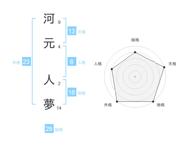 河元 人夢さんの総格は29画の4点!