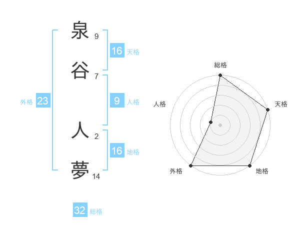 泉谷 人夢さんの総格は32画の5点!
