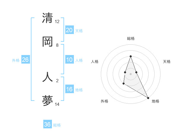 清岡 人夢さんの天格は20画の1点!