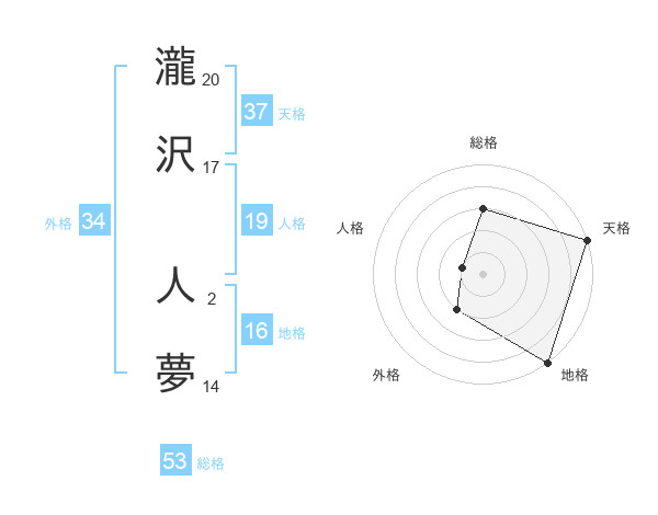 瀧沢 人夢さんの天格は37画の5点!