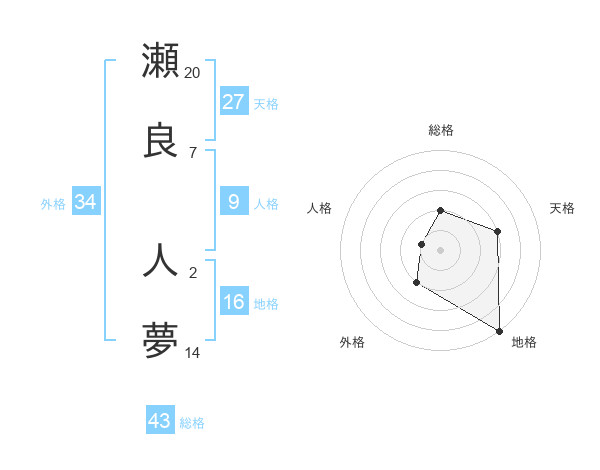 瀬良 人夢さんを姓名の画数から五運を鑑定
