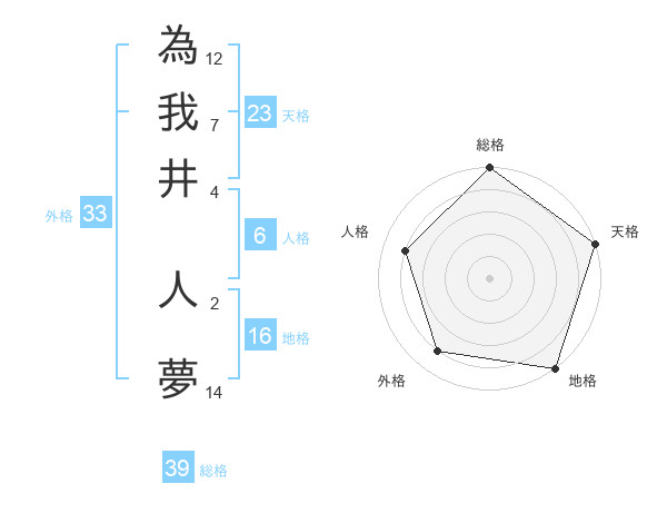 為我井 人夢さんを姓名の画数から五運を鑑定