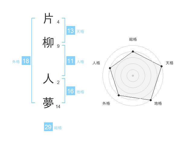 片柳 人夢さんの総格は29画の4点!