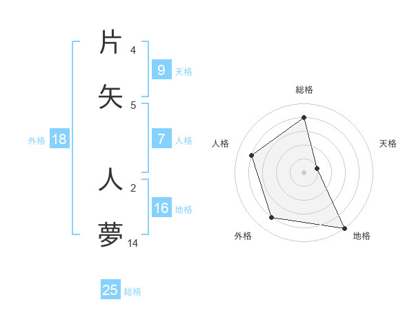 片矢 人夢さんの総格は25画の4点!