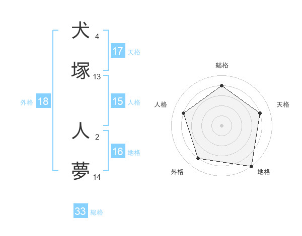 犬塚 人夢さんを姓名の画数から五運を鑑定