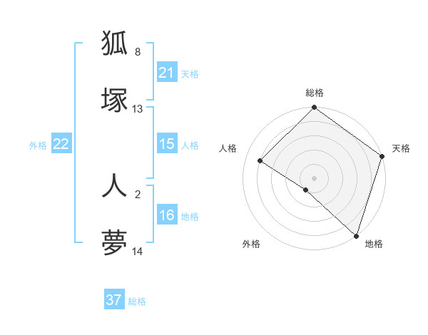 狐塚 人夢さんの総格は37画の5点!
