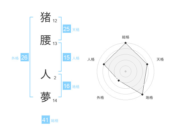 猪腰 人夢さんを姓名の画数から五運を鑑定
