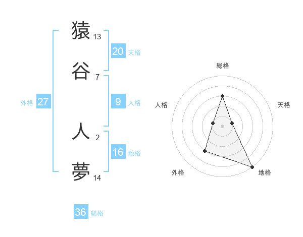 猿谷 人夢さんの天格は20画の1点!