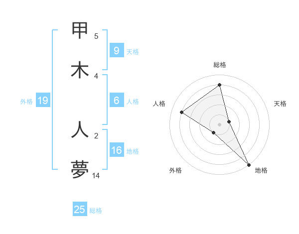 甲木 人夢さんの総格は25画の4点!