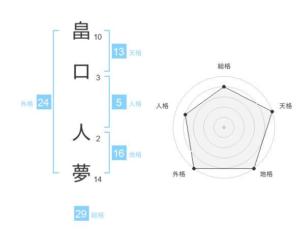 畠口 人夢さんの総格は29画の4点!