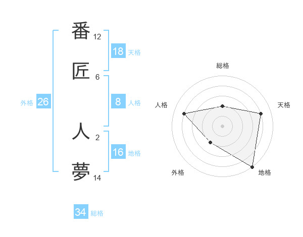 番匠 人夢さんを姓名の画数から五運を鑑定