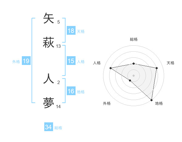 矢萩 人夢さんの天格は18画の4点!