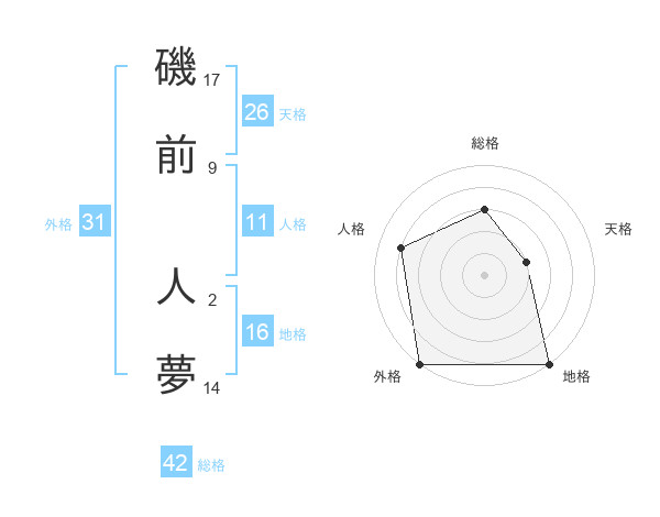 磯前 人夢さんを姓名の画数から五運を鑑定