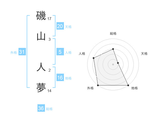 磯山 人夢さんの外格は31画の5点!