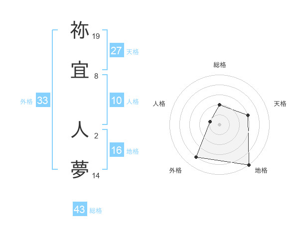 祢宜 人夢さんを姓名の画数から五運を鑑定