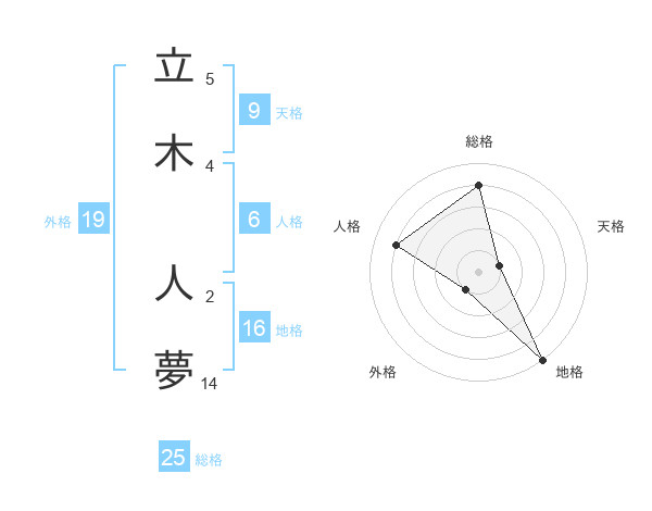 立木 人夢さんを姓名の画数から五運を鑑定