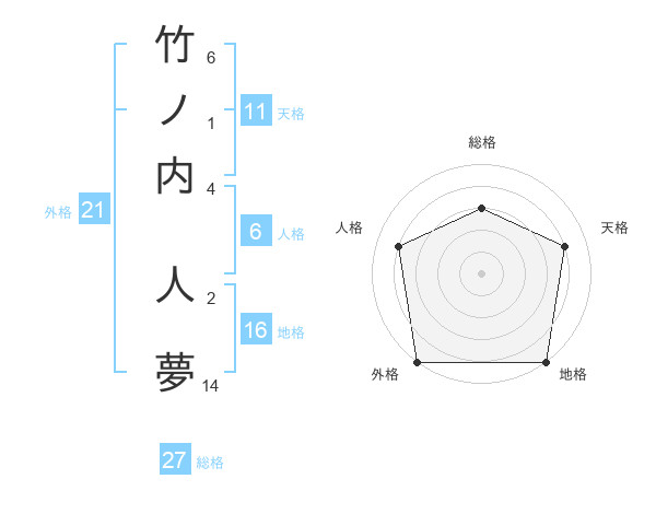 竹ノ内 人夢さんの総格は27画の3点!