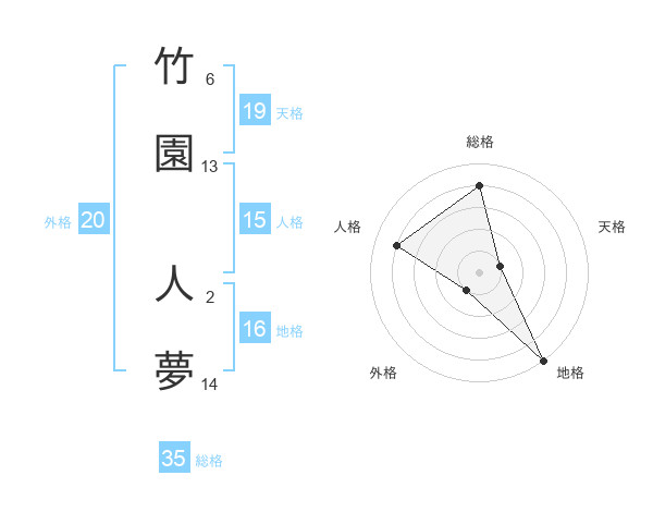 竹園 人夢さんの天格は19画の1点!