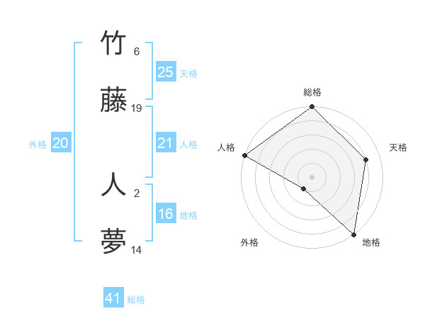 竹藤 人夢さんを姓名の画数から五運を鑑定