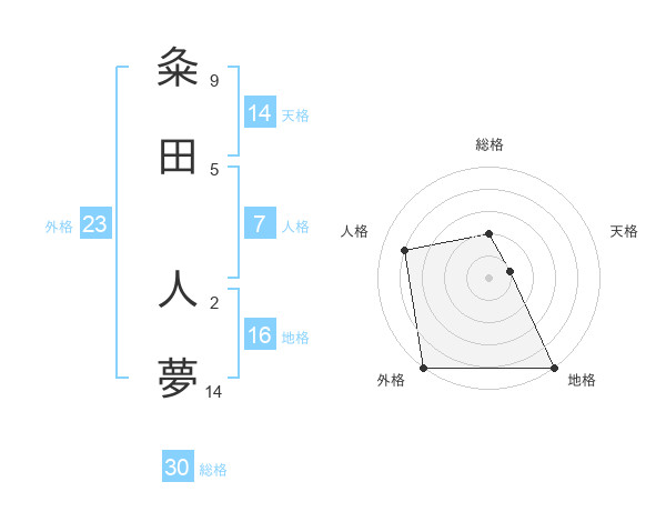 粂田 人夢さんを姓名の画数から五運を鑑定