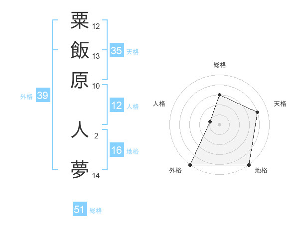 粟飯原 人夢さんを姓名の画数から五運を鑑定